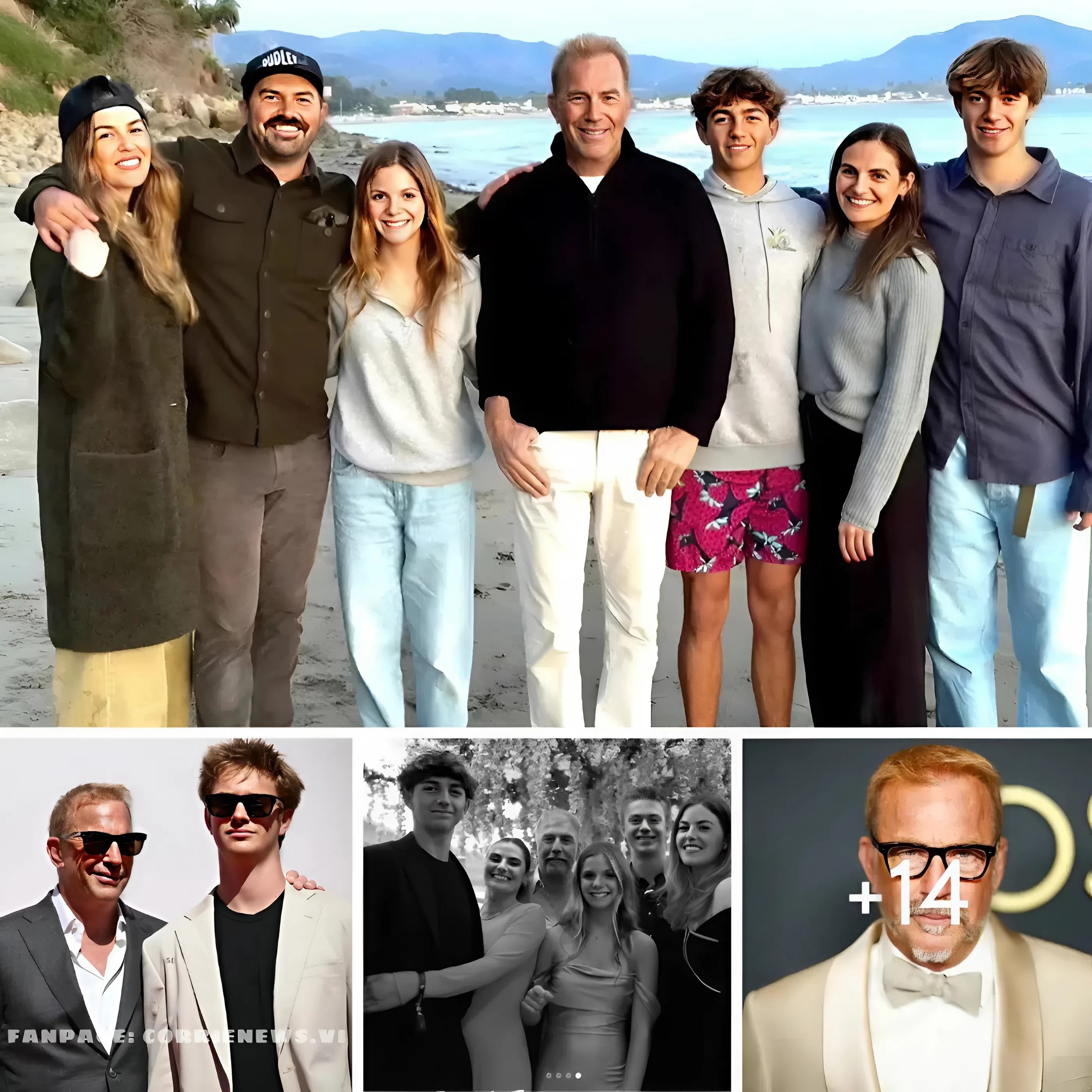 In the first photo, Costner flashes a smile while on a beach accompanied by daughters Annie, 40, Lily, 38, and Grace, 14. Also in the beach shot are sons Joe, 36, Cayden, 17, and Hayes, 15. The “Yellowstone” star stood in the middle as his kids embraced once another while posing.