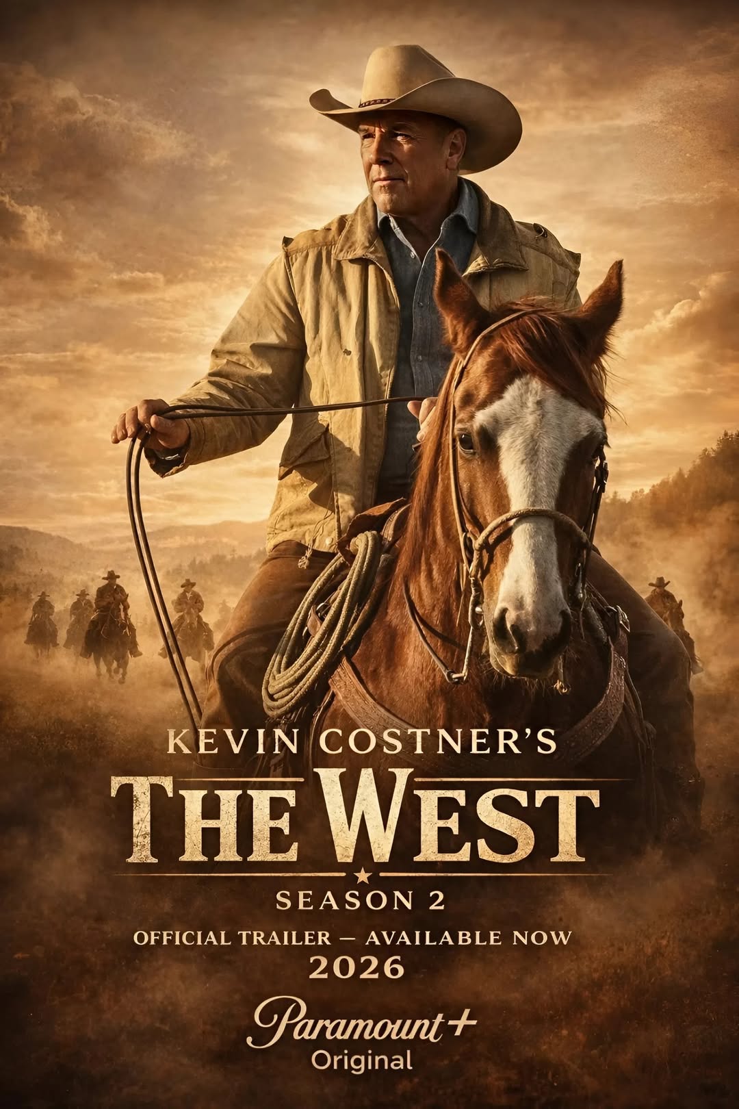 Có thể là hình ảnh về văn bản cho biết 'KEVIN COSTNER'S THE WEST SEASON 2 OFFICIAL TRAILER OFICALTRAILER-AVAILABLE.NOW -AVAILABLE NOW 2026 Paramount+ Original'