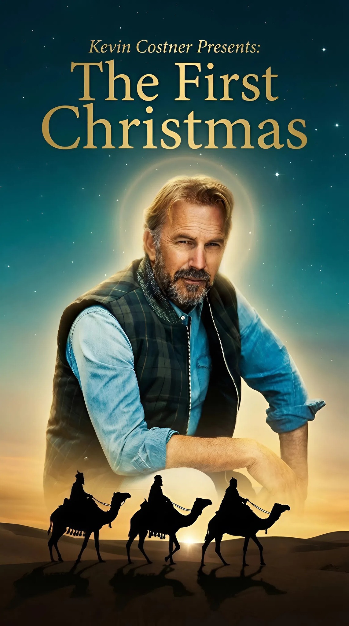 Có thể là hình ảnh về ‎cây và ‎văn bản cho biết '‎Kevin Costner Presents: The First Christmas Luar ישששגר LY PANIU‎'‎‎
